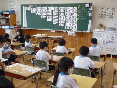 1年生はついこの前まで足し算を学習していたのですが、今日教室をのぞいてみると引き算に取り組んでいました。真剣な表情で頑張っていました。
