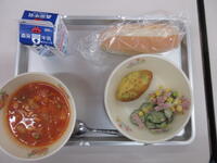 今日の給食です 投稿日時 : 2023/06/29 学校サイト管理者 今日の給食メニューは、牛乳、ソフトフランスパン、チキンビーンズ、ほうれんそうオムレツ、コーンと枝豆のサラダでした。チキンビーンズには、肉に負けないほど栄養のある「畑の肉」といわれる大豆がたくさん使われていました。 Tweet