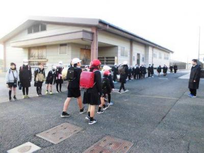 今朝は今年初めてのあいさつ運動に、栗崎・大坊地区の皆さんと運営委員・生活委員の当番が参加してくれました。松川会長さんからは「徒歩で来る皆さんが、朝から元気なあいさつをしてくれると学校全体が元気づきます。これからも頼みます。」と激励を受け、大倉さんのかけ声で「がんばるぞ!」と締めて終了しました。寒い中、みんな、ありがとうございました