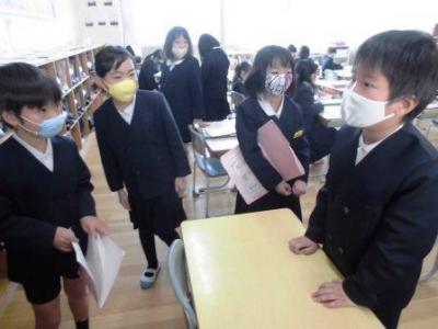 今日の地区児童会では、来年度の地区長決め・新登校班の編成・新入児の確認などがあり、いよいよ来年度に向けた準備が始まりました。来月の新1年生体験入学で渡すお手紙の準備も笑顔で進め、6年生から次のリーダーへとバトンタッチです