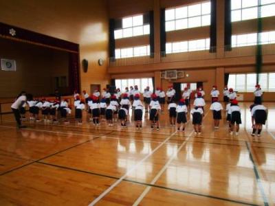 3年生の合同体育「リズム・ダンス」音楽に乗って、みんな楽しく身体を動かしていました。