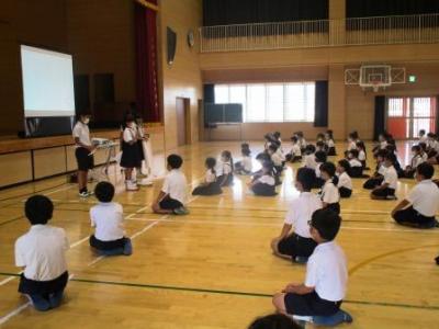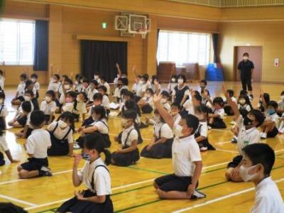全校児童へ放送で「身体を動かすことが大好きですので、一緒に活動しましょう!」と呼びかけてくださいました。