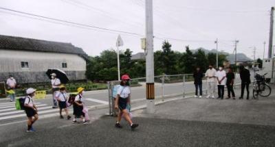 今朝は、五区・富尾地区の皆さんがあいさつ運動に参加しました。暑い中でしたが、元気な声でみんなを迎えてくれました。