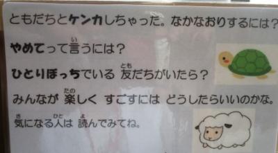 今回の講話に合わせて吉武先生が図書室に設置してくださった「ともだちコーナー」。