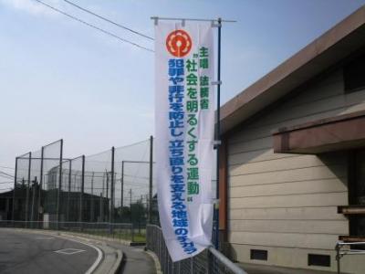 今朝は、校区で保護司の活動を行っておられる2名の方が、のぼり旗の設置とともにあいさつ運動にも参加してくださいました。