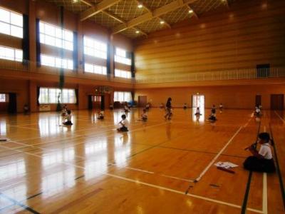 3年生、広ーい体育館でのリコーダーの演奏。この日初めて運指以外で音を出したそうです。きれいな音が聞こえました。