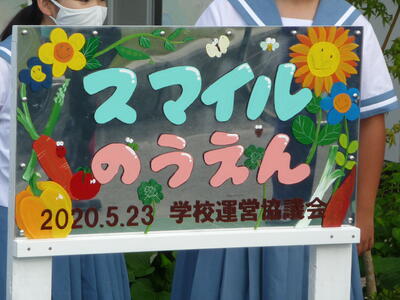 中学校の自転車小屋近くに、特別支援学級の児童がサツマイモなどを栽培する農園があります。これは、前校長先生の要望により学校運営協議会の方々に造っていただいたものです。そこには「スマイル農園」と書かれた看板が立てられていたのですが、老朽化(腐食)もあってリニューアルしました。玉陵中学校美術部の生徒が心を込めて作成してくれた素晴らしい看板です。