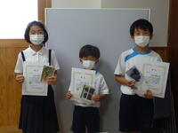 夏休み前に天草市が主催した「恐竜絵画コンテスト」に、本校からも取り組める学年は取り組んで応募しました。その結果、3名の児童が入賞しました。賞状と記念カードが届きましたので、校長室で表彰を行いました。おめでとうございます。(個人情報保護のため氏名は掲載しません)