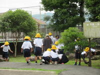 今日の3時間目の生活科の時間に、1年生が学校の周りを歩きながら、生き物さがしの探険をしました。「モンシロチョウがいました。」「きれいな花が咲いていました。」など話をしてくれました。たくさんの発見があったようです。