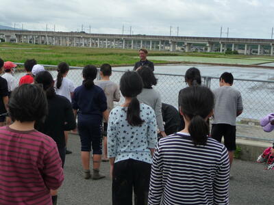 6月24日(金)、朝9時から5年生は学校プール南側(保護者所有の田んぼを貸していただいている)で、田植えをしました。保護者や学校運営協議会の方10名にも手伝っていただきました。初めて田んぼに入る児童も多かったようで、とてもよい経験をさせていただきました。5年生は、苗が生長していく様子を教室から見守りながら、秋の稲刈りを楽しみにすることと思います。