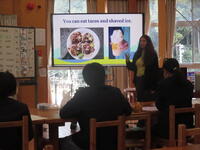 まず、ALTの自己紹介がありました。スライドを使いながら、故郷のオーストラリアやアメリカの紹介や家族や友達の紹介がありました。