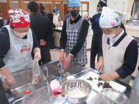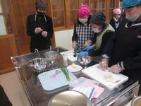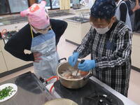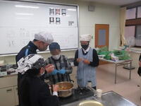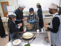 昨日(12月11日)、恒例の郷土料理教室がありました。地域の生活研究グループの方々にお世話になり、今回はだご汁づくりに挑戦しました。里芋、人参、きくらげ、ねぎなどを切りわけ、煮ていきます。醤油ベースの味付けをして、最後にだご(団子)をちぎって入れていきました。いろんな形のだご(団子)が入っただご汁が完成しました。私も、食べさせていただきました。たくさんの野菜などから出汁が出ており、心も体も温まりました。また、地域の方々のおかげで、貴重な体験をさせていただきました。