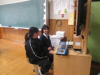 6年生は、拡大縮小の学習で、四角形の拡大図の作図をしていました。ものさし、分度器、コンパスを上手に使って作図をしていました。作図した後は、タブレットで写真を撮り、タブレット上のシートに貼り付けます。貼り付けたものをみんなで見合って、作図の仕方を説明していました。