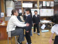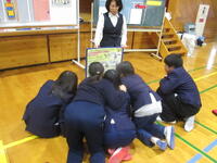 2月16日(月)に八代警察署の交通安全指導員の方や地域の交通指導員の方などを招いて交通教室を行いました。対象は6年生です。中学生になったら自転車に乗り機会が増えるということで、自転車の乗り方を学びました。