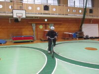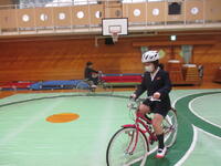 最後は、実際に自転車に乗って体験します。8の字のコースでは、コースからはみ出ないようにするのが難しいようでした。