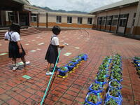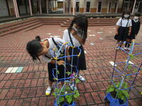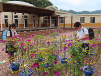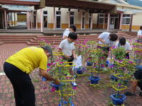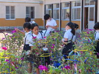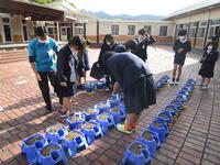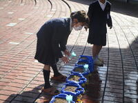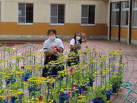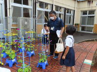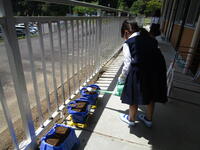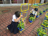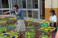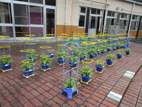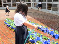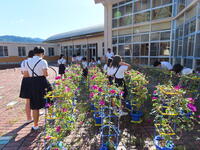 先生たちの分も鉢を準備し、八竜小全員で取り組みます。