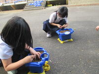 2年生と3年生が、アサガオのたたきぞめを行いました。
