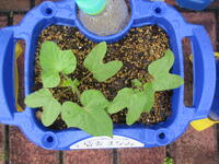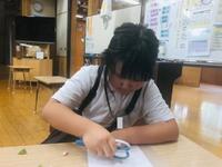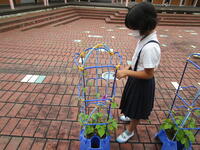 今週に入り、暑い日が続き、宇宙アサガオも元気に生長しています。一人一鉢の宇宙アサガオは、全員のアサガオから芽が出ました。そして、生長の早いアサガオには、本葉が出ていました。