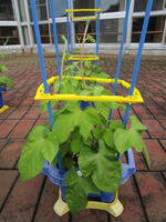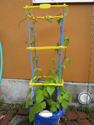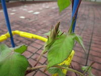 今週は、鉢に支柱をたてました。支柱をつたって、空に向かってどんどん伸びてほしいものです。