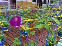 5月に植えた宇宙アサガオは、今年もぐんぐん成長してきています。