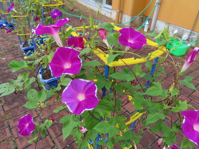榎田先生&早木先生のアサガオと、6年生こゆきさんのアサガオです。