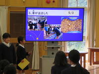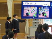 まず、2年生の児童が、これまでのアサガオの成長の様子や育てた感想、八竜小宇宙アサガオクイズを発表しました。