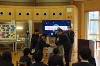 宙だよりスタジオ田中様に、アサガオの種と、次年度 宇宙アサガオを育てる神奈川県葉山町立長柄小学校のみなさんへの手紙を、代表児童がお渡ししました。