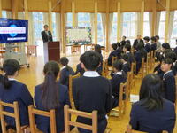 最後に、校長先生から「つながり」というキーワードでお話をしていただきました。100個の種が25550個の種になり、生命のつながりを子供たちは実感することができたのではないでしょうか。