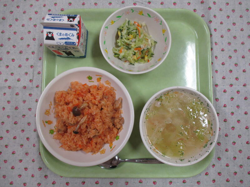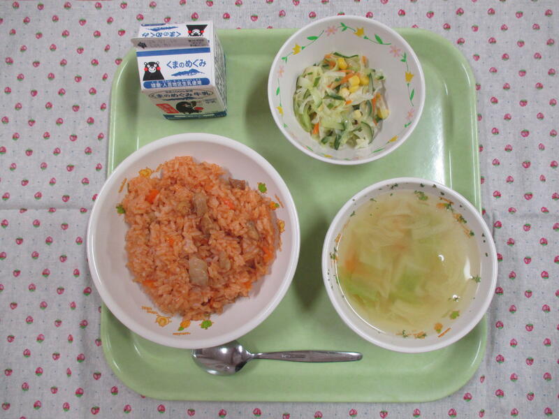 今日は、子供たちの大好きなチキンライスでした。大盛りで食べている子やおかわりをする子もいて、たくさん食べていました。もちろん今日も完食です。