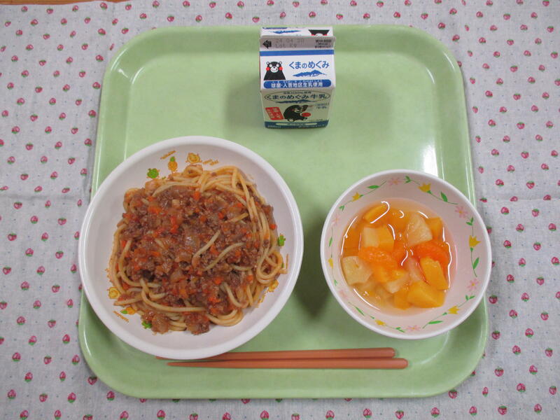 今日は、地場産物を活用した「ふるさとくまさんデー」でした。熊本の海で獲れた太刀魚、八代で生産された食用のい草粉末を練り込んだい草そうめん等が使われていました。ふるさとの食材に感謝しながら、今日もおいしくいただきました。