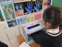 タブレットパソコンを使って、考えが友達に伝わるように工夫していました。