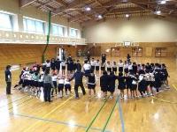 12月3日は、女子ハンドボール世界大会の観戦があります。もうすぐです。それに向けて全校集まって応援の練習をしました。試合はセネガル対スペインですが、八竜小学校はセネガルを応援します。そこで6年生が「セネガルが勝ちますように神に祈ります」の意味を込めた言葉を大きく書いてくれました。難しい言葉ですが、みんなで元気よく声を出しました。本番の試合で声援が届くといいなと思います。また、体育の授業では、ハンドボールを取り入れた楽しい学習をしています。写真は、2年生と6年生のミニハンドボールの様子です。慣れてくるとジャンプしながら、シュートする児童もいました。