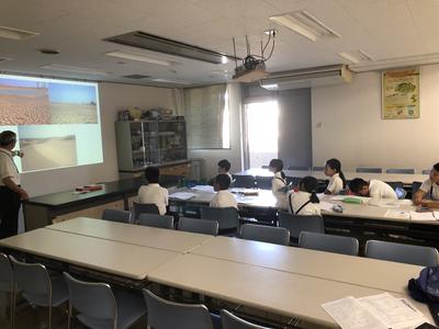水俣病資料館にて、水俣病のことを学んでいます。語り部の緒方さんのお話を真剣に聞いていました。