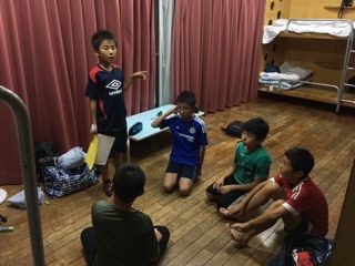 部屋に戻ってからは、1日の振り返りをし、班長は連絡事項を班のメンバーに伝えてくれています。明日の活動に備えてしっかり休んでほしいと思います。天気が晴れるといいなぁ〜。