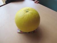 図書室の前のフリースペースに晩白柚(ばんぺいゆ)が飾られています。