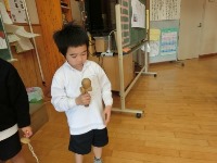 子どもたちは、上手にひもを巻いて回していました。最初はできなかった子どもたちもだんだん上手になってきました。