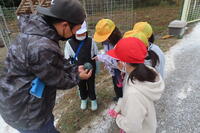 餌やり体験をさせていただきました。エミューは、キャベツや白菜などの野菜、バッタやミミズを食べるそうです。