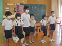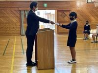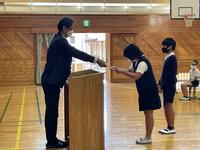 一年間のまとめ修了式では、5年生しんさん、4年生みさきさん、3年生さえとさん、2年生のあさん、1年生にいなさんが代表して修了証を受け取りました。誰もが立派な態度での振る舞いで、本当に成長を感じました。