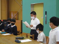 感染症対策で在校生は5年生のみの参加となりましたが、次年度の八竜小リーダーとしてふさわしい立派な態度で臨んでくれました。また、別教室でリモート参加していた下級生にも、凜々しい卒業生の姿を見せることができました。