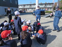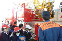 たくさんの消防車の中を見せてもらったり、道具を手に持たせてもらったりしながら、消火活動の大変さについても考えました。