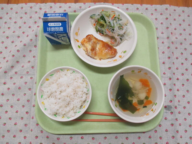 今日は、文字通り、中華でした。中華まぜごはんに、中華スープで、中華料理の味を堪能しました。特に中華まぜごはんは、具だくさんに、香ばしくごはんが進みました。今日もおいしくいただきました。