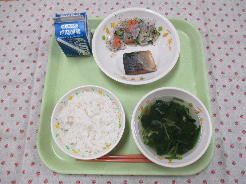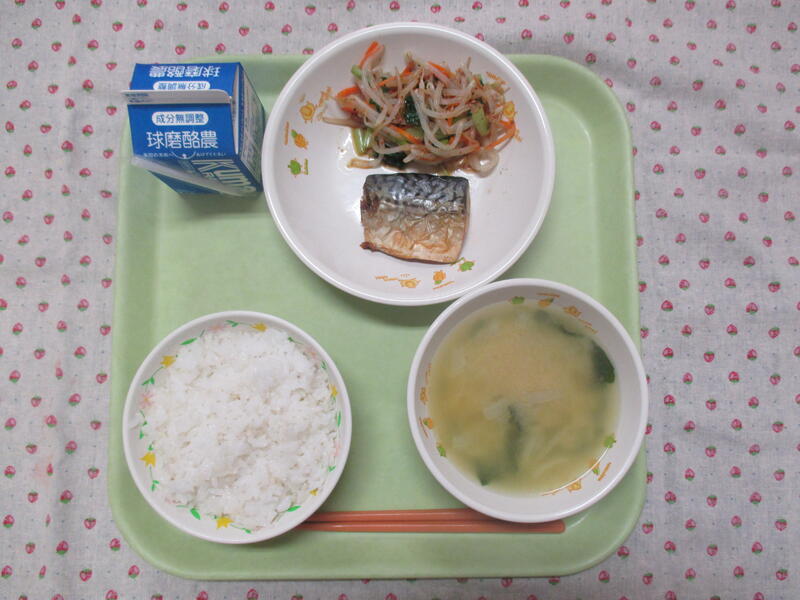 今日の献立は、麦ごはん、牛乳、塩さば、みそ汁、かわりきんぴらでした。