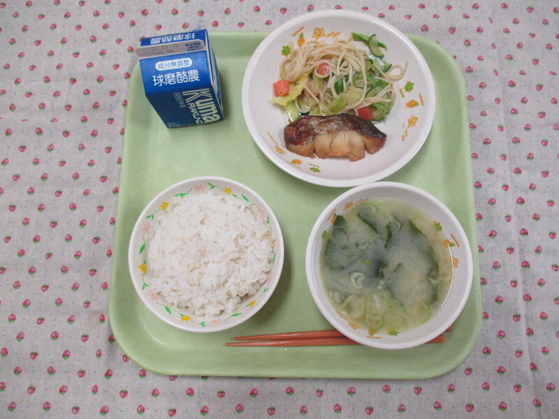 今日は、「和食を味わう日」のメニューでした。一汁二菜で、呉汁に、さばの照り焼き、菜焼きのおかずでした。和食を存分に味わいました。今日もおいしくいただきました。