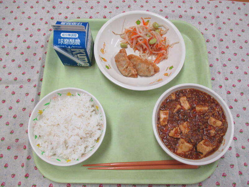 中華料理の定番のマーボー豆腐ですが、八竜小のマーボー豆腐は、優しい味付けで、ご飯にとても合います。子供たちも大好きで、今日もおいしくいただきました。