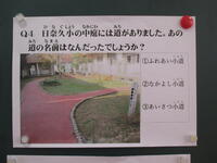 例えば、「日奈久小の中庭には道がありました。あの道の名前(なまえ)はなんだったでしょうか」の問題。選択は➀ふれあい小道 ➁なかよし小道 ➂あいさつ小道 ですが、みんなよく➀ふれあい小道を覚えているようです。
