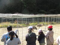 追伸:エミューにエサをあげている時、その奥の里山からなにやら子供達の声がします。