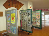 校内人権月間中の八竜小に「八代市人権作品」の巡回が回ってきました。