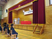 保健・環境委員会のひいろさん、給食委員会のようすけさん、体育委員会のかいきさん、図書委員会のひろひとさん、運営委員会のぜんさん、6年生5人が、一年間頑張ったことや下級生への励ましのメッセージを伝えてくれました。この6年生の姿を見て、来年度の委員会活動をきっと在校生も引き継いでくれると感じました。
