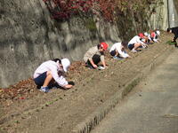 ほとんどの子供達が、初めての体験でしたが、一人100gを「まんべんなく」蒔くことががんばりました。高学年には、早川さんから「菜の花を植えることで土の栄養にして農薬や化学肥料を減らすことにつながり、また菜の花の種を収穫し次の年に繰り返す『循環型の農業』を目指している」というお話があり、みんな真剣に聞いていました。