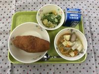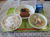 しょうがご飯、牛乳、うまかコロッケ、米粉のだご汁 です。